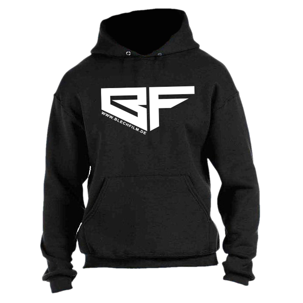 Kapuzenpullover Farbe Schwarz. Aufdruck auf der Vorderseite.